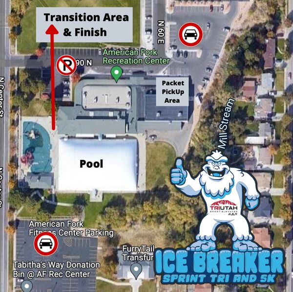 Once you rack your bike, exit the transition area from the NW gate of the ball field located north of the American Fork Fitness Center (AFFC), and follow the RED Run signs.